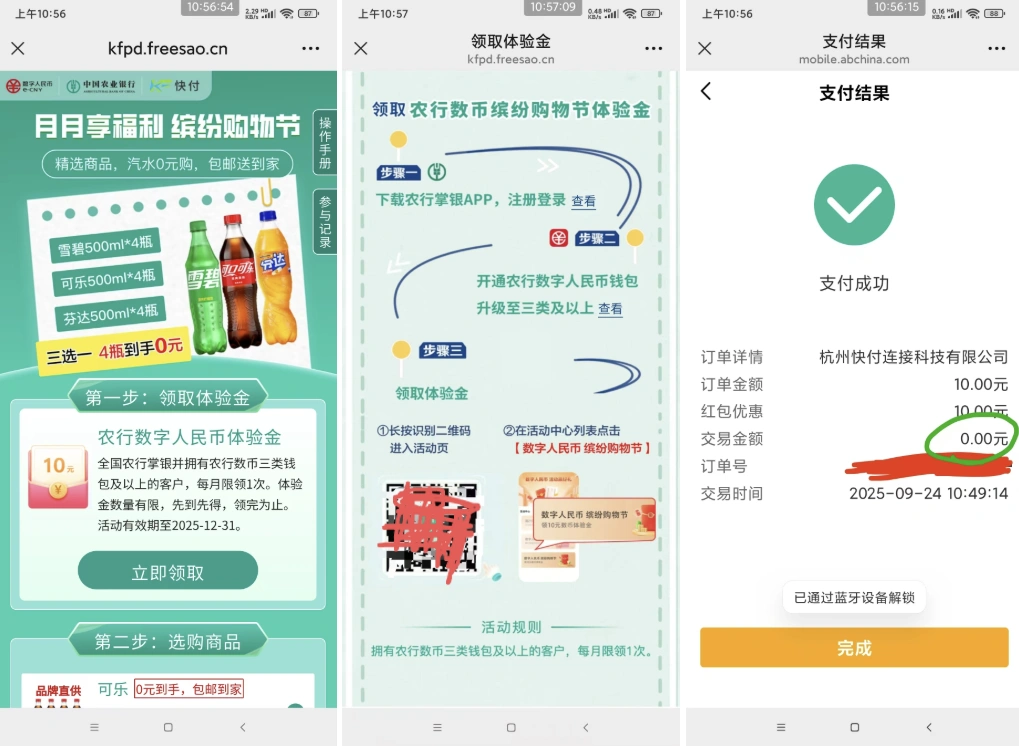 当前位置: 首页全部分类实操项目正文 农行数币免费领四瓶可乐/雪碧/芬达+10-20立减金 声明:本站所有文章,如无特殊说明或标注,均为本站原创发布。任何个人或组织,在未征得本站同意时,禁止复制、盗用、采集、发布本站内容到任何网站、书籍等各类媒体平台。如若本站内容侵犯了原著者的合法权益,可联系我们进行处理。 收藏 链接